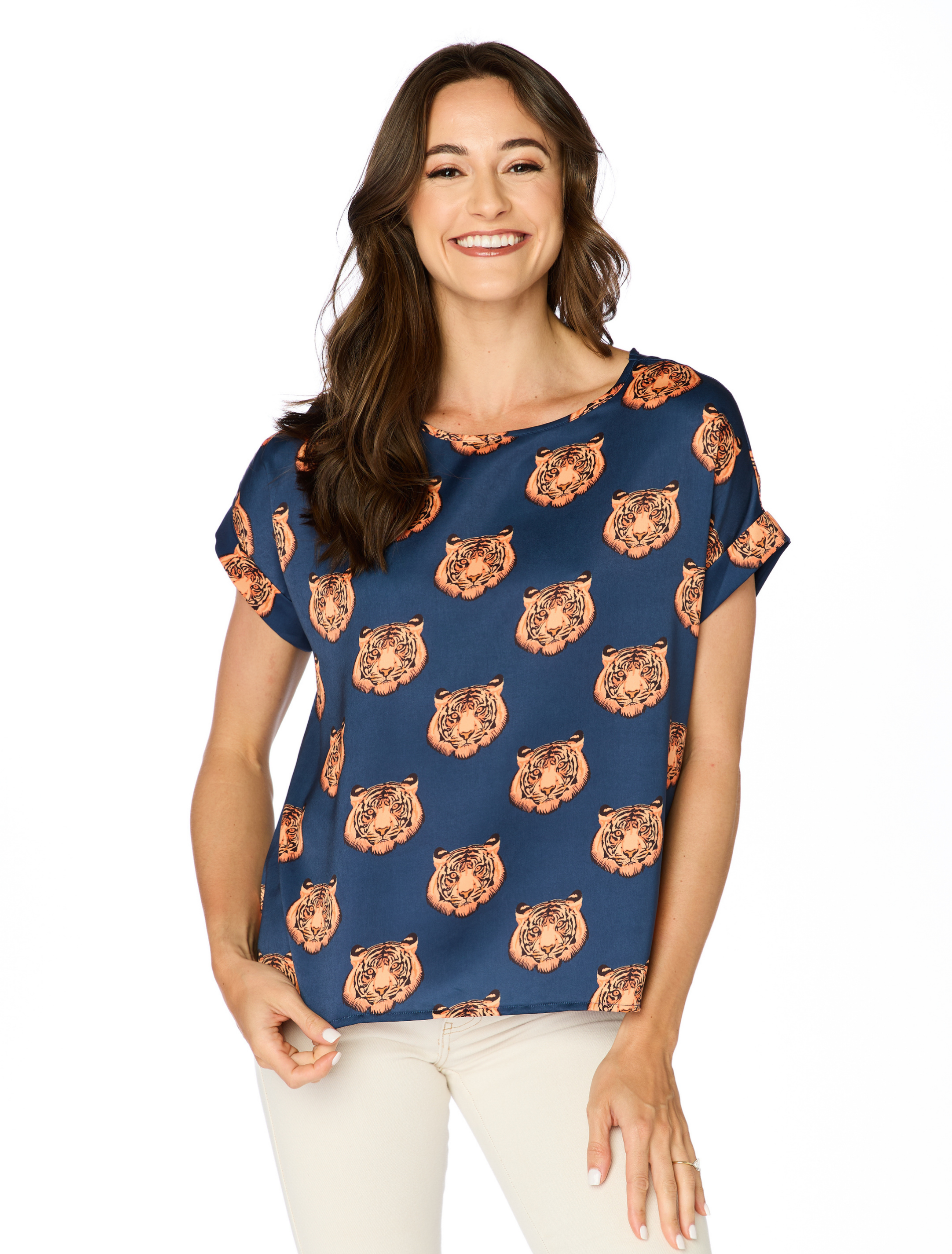 The Auburn Tigers Rolled Cuff Blouse