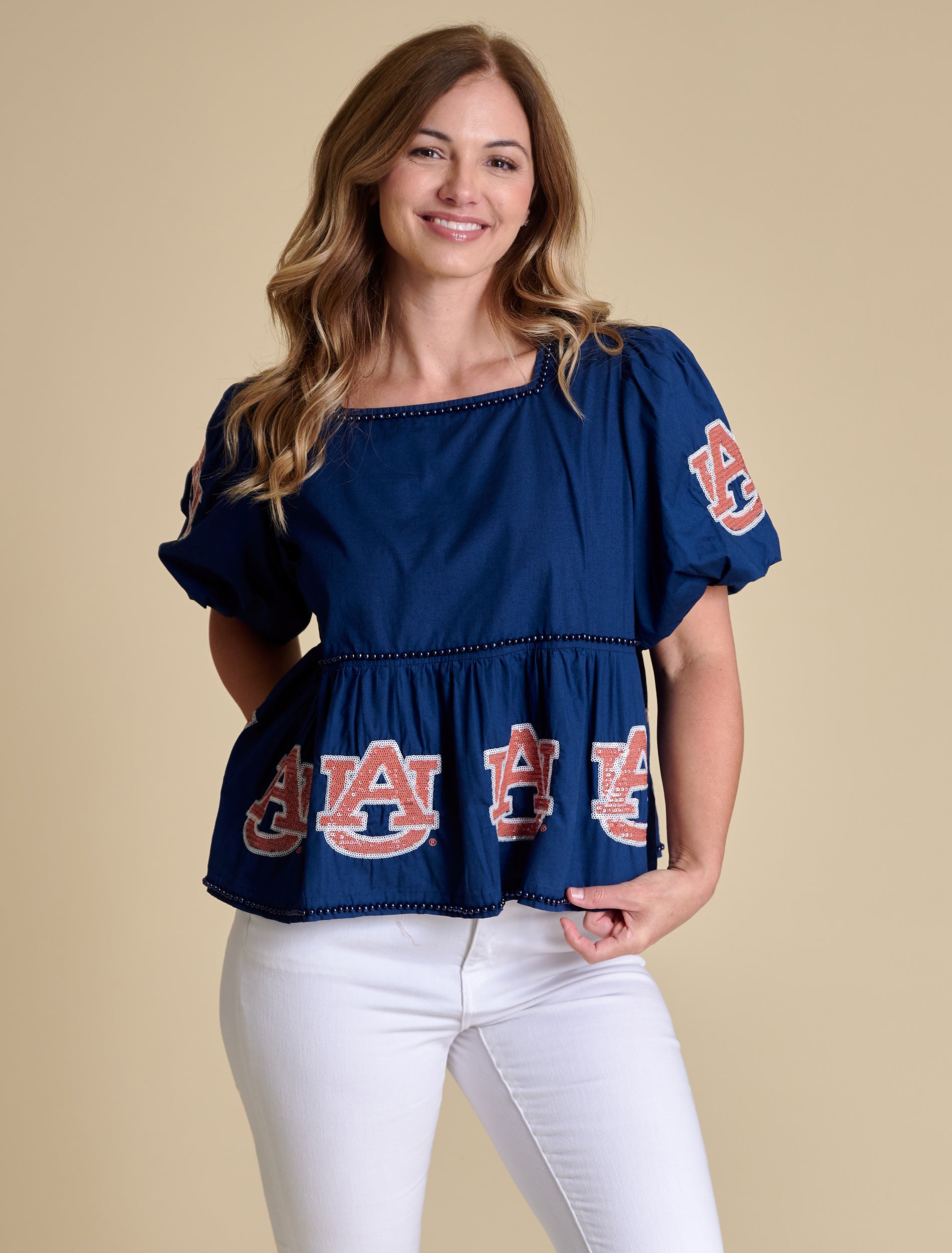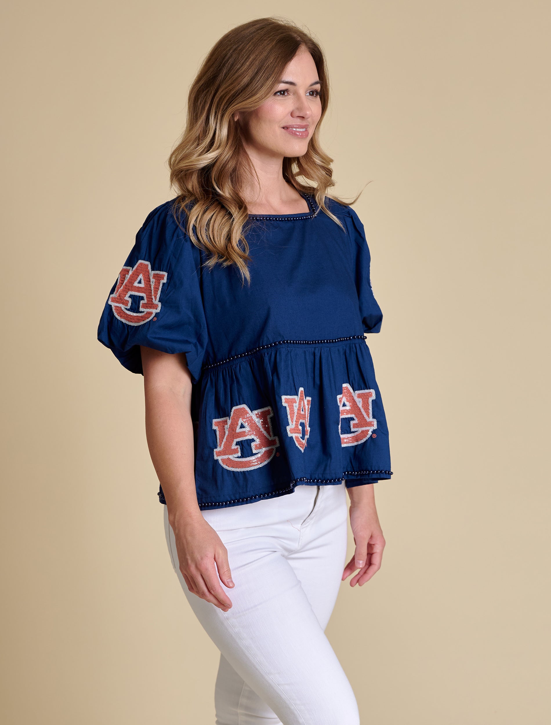 The Poly Ruffle Sleeve Blouse | Auburn Tigers