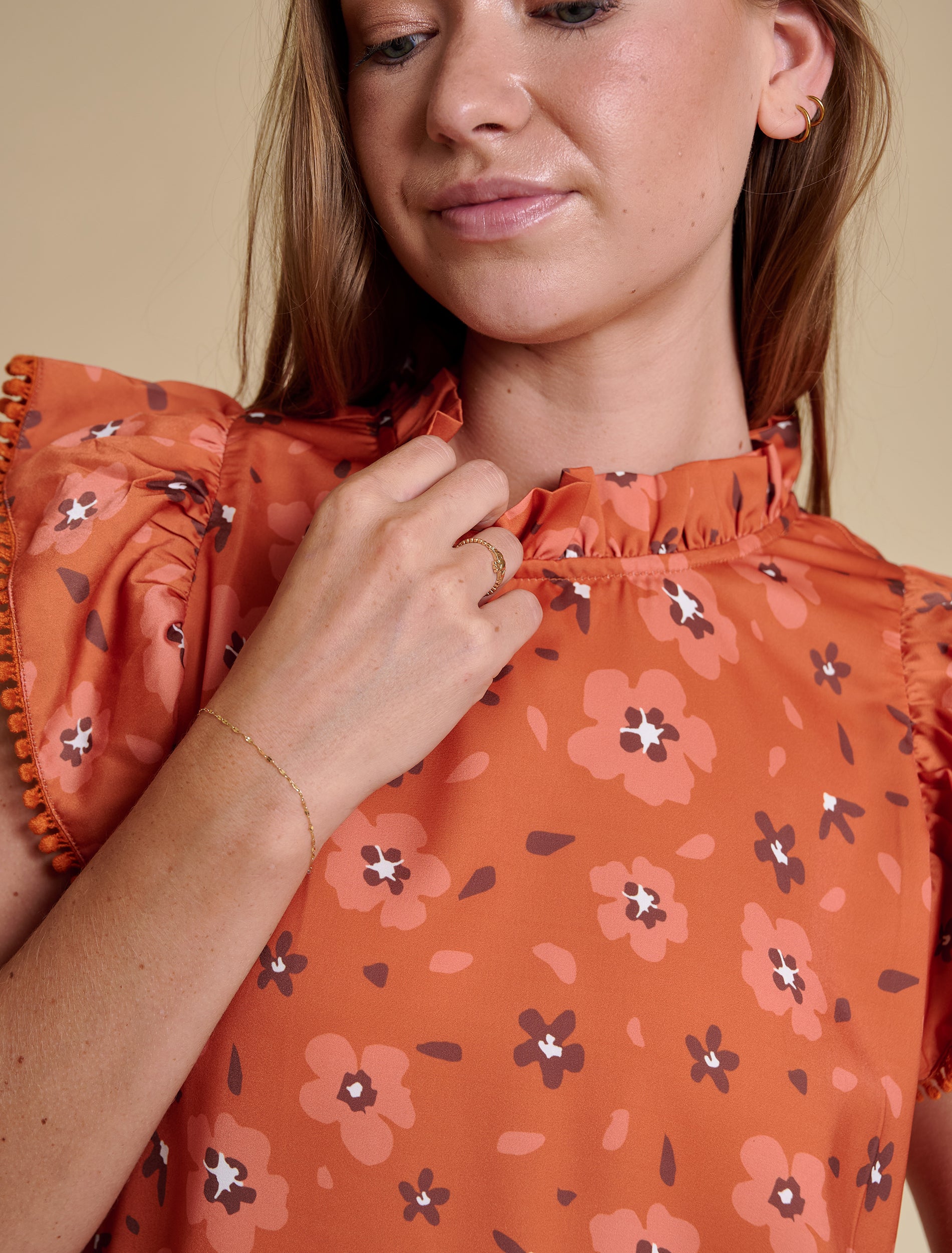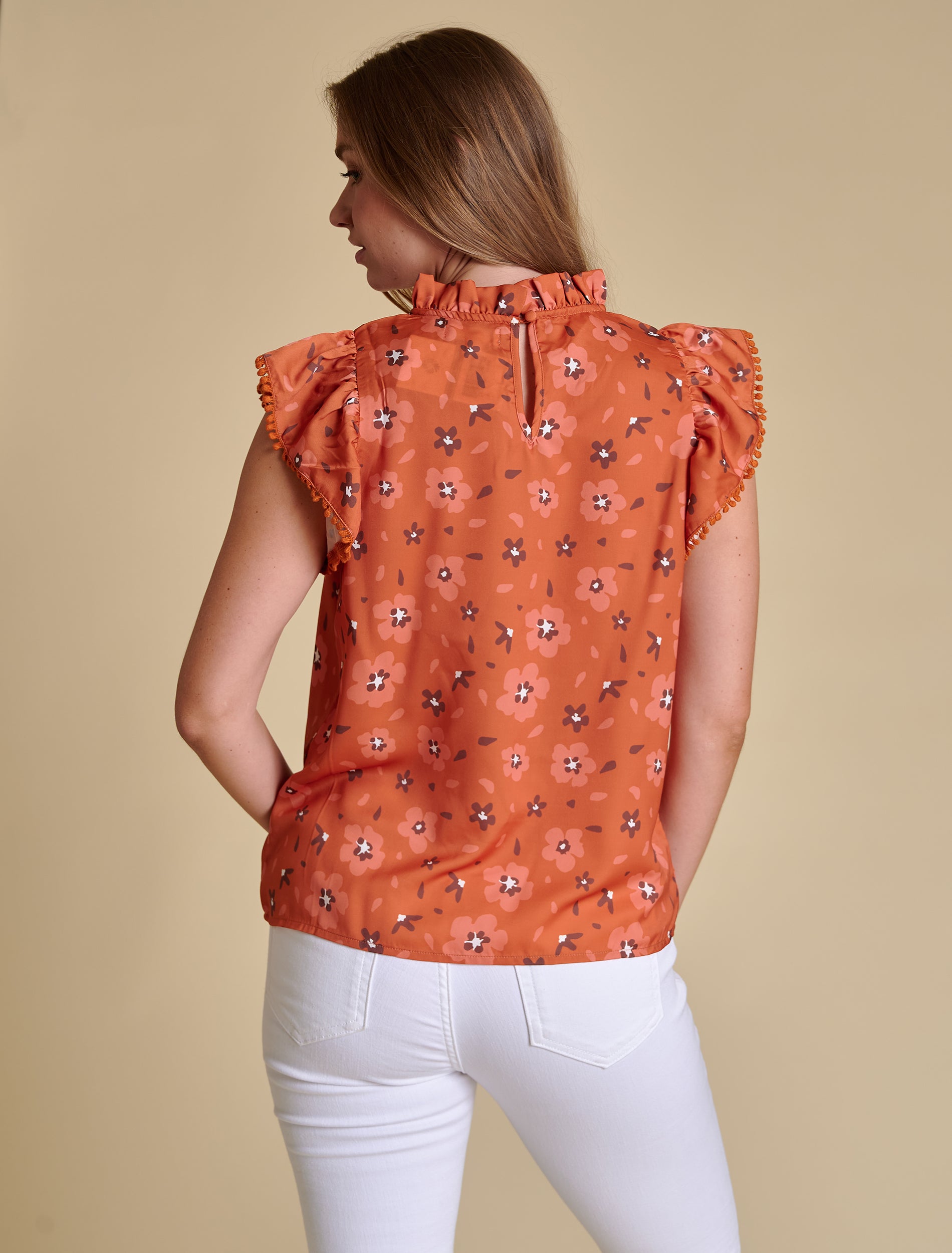 The Poly Ruffle Sleeve Blouse | Burnt Orange Floral Print