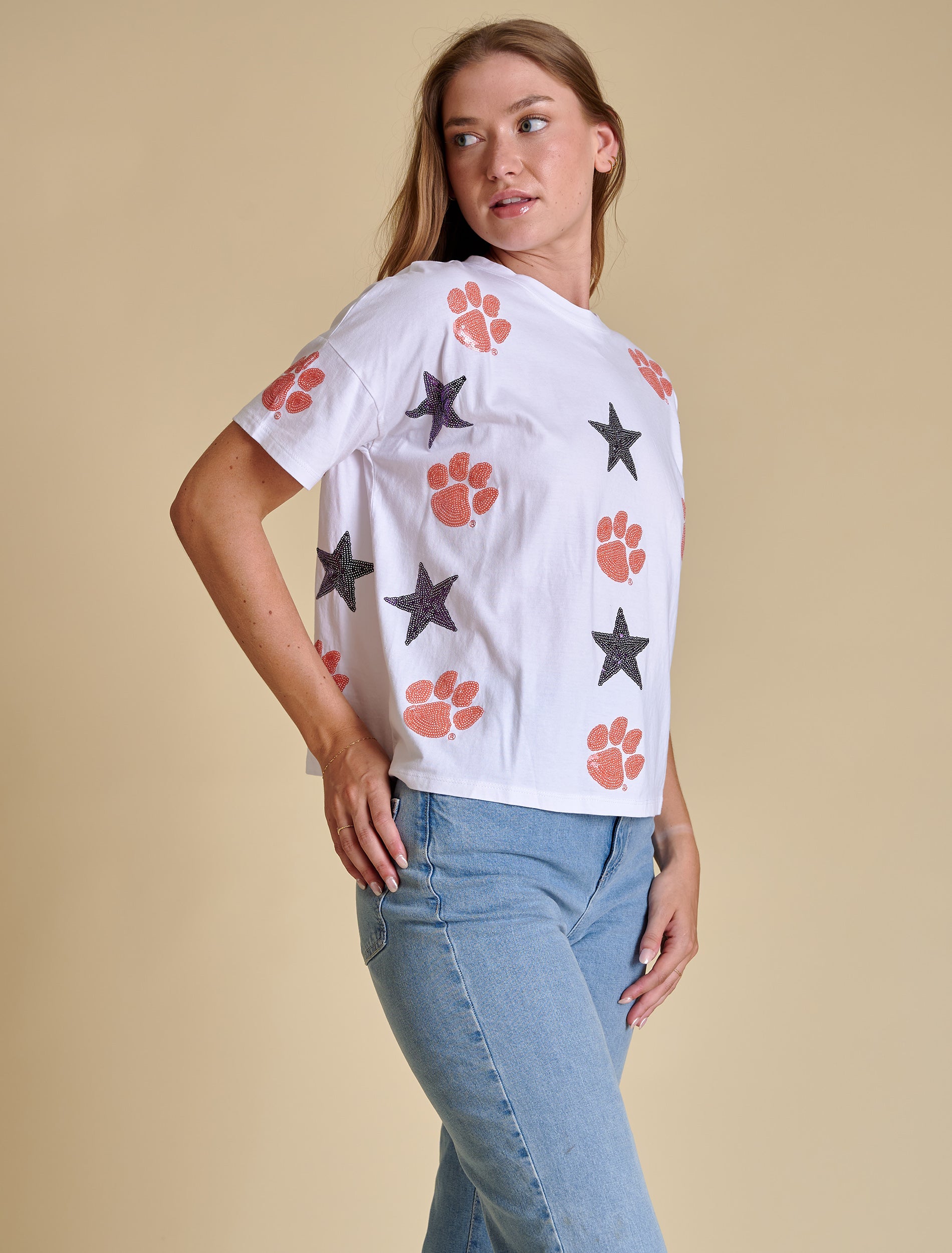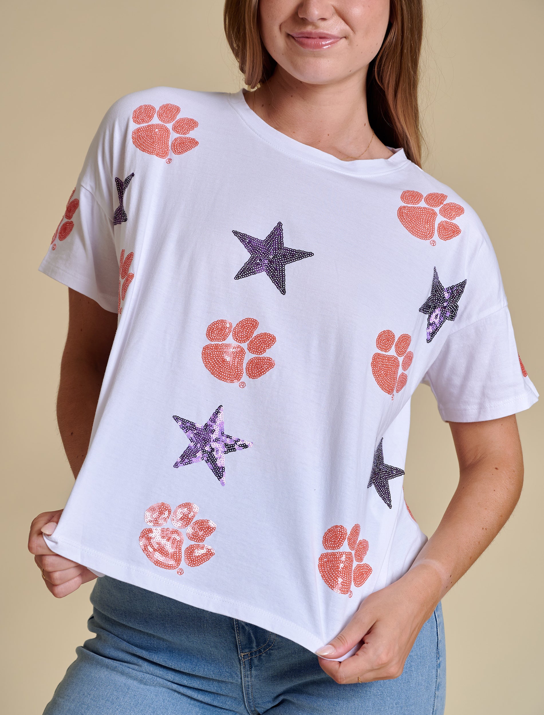 The All Over Sequin Boxy Tee | Clemson