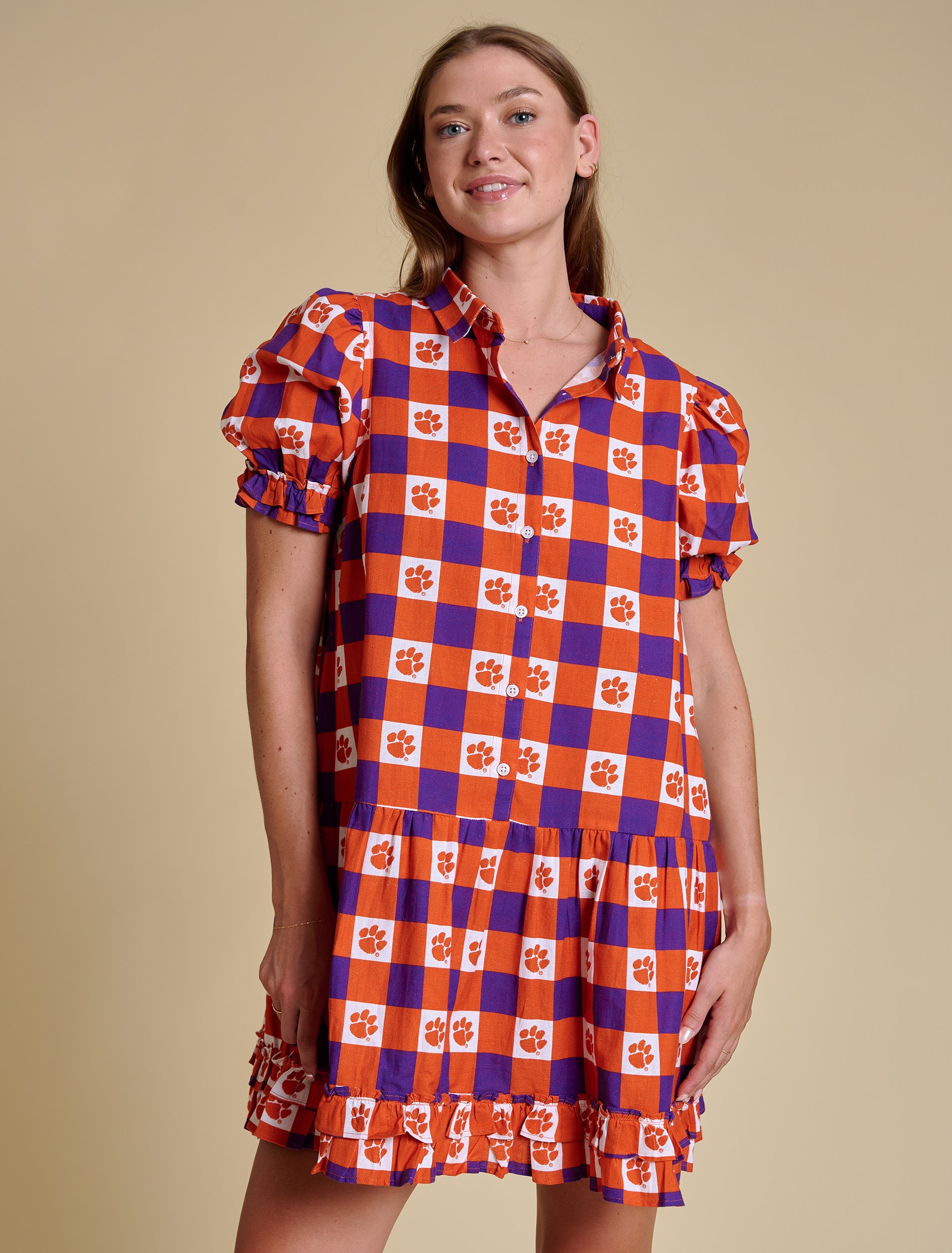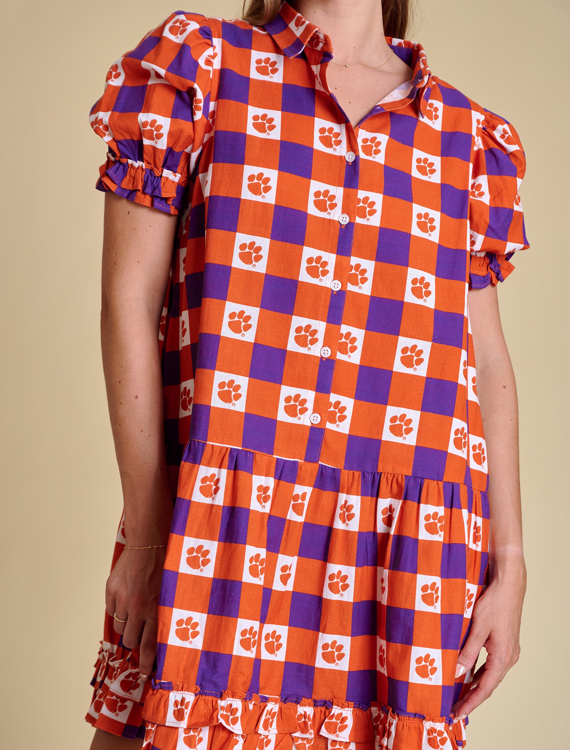 The Go Gingham Ruffle Dress | Clemson