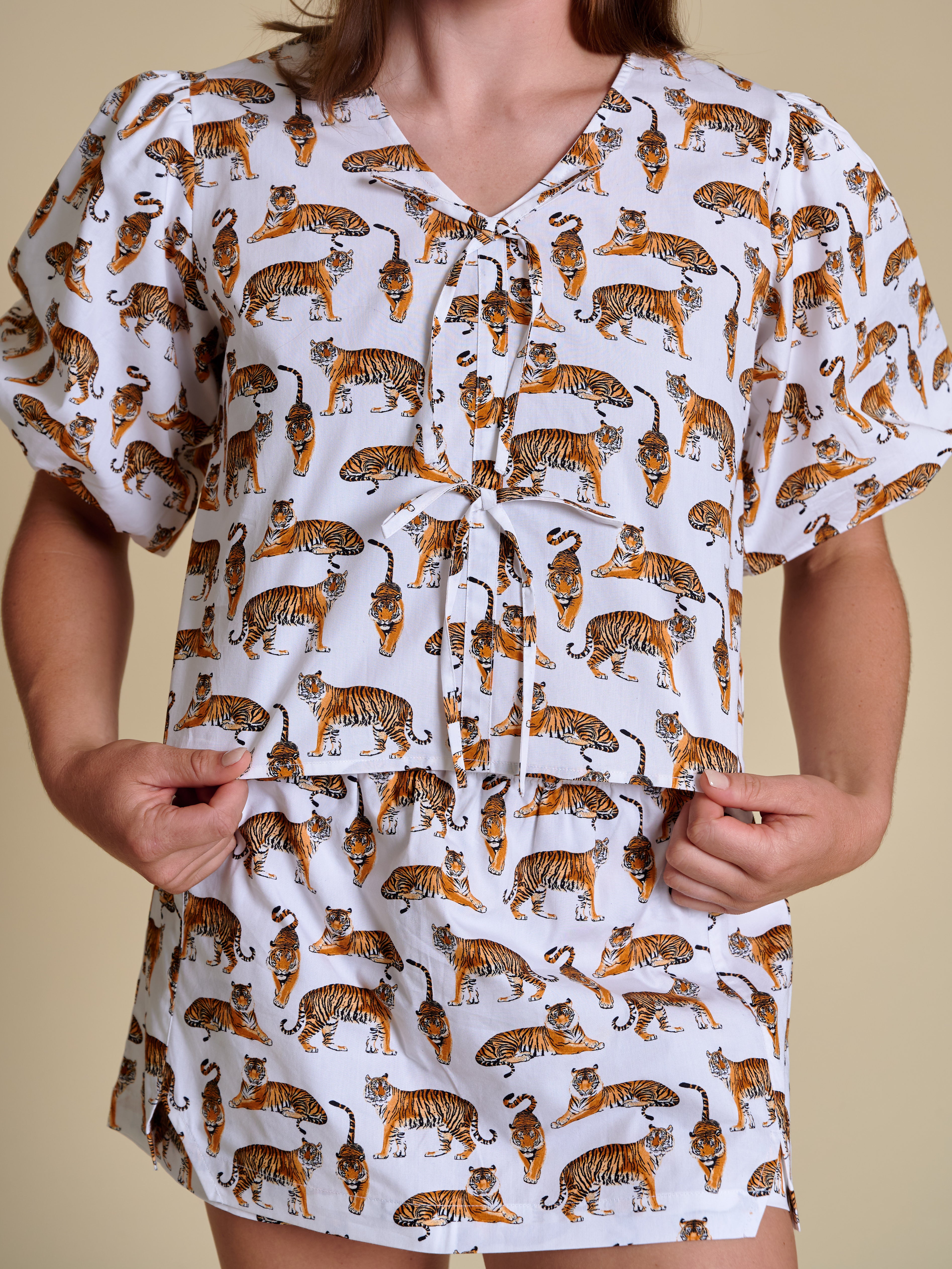 The Poplin Puff Sleeve Tie Top | Tigers