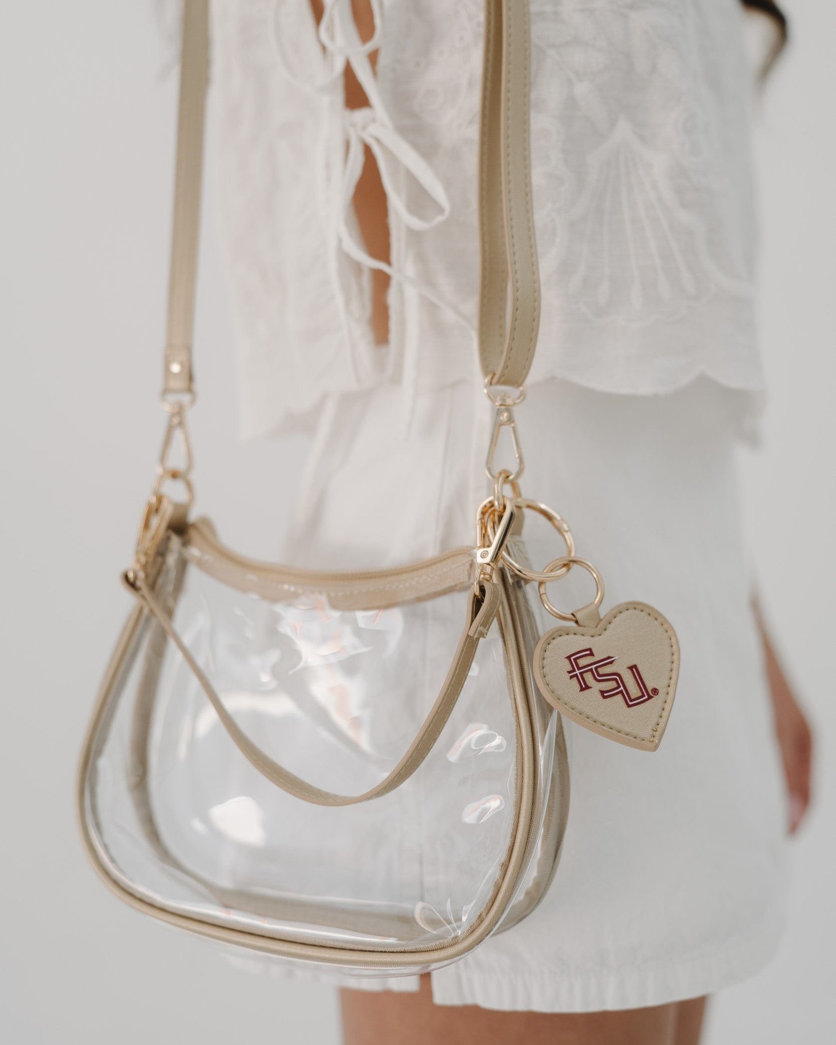 Carry your team pride with the Clear Clara Purse — a stylish, stadium-approved accessory designed for game day and beyond. This gameday go-to comes with a matching, detachable heart charm for an extra touch of team spirit.