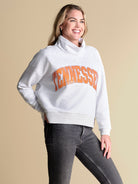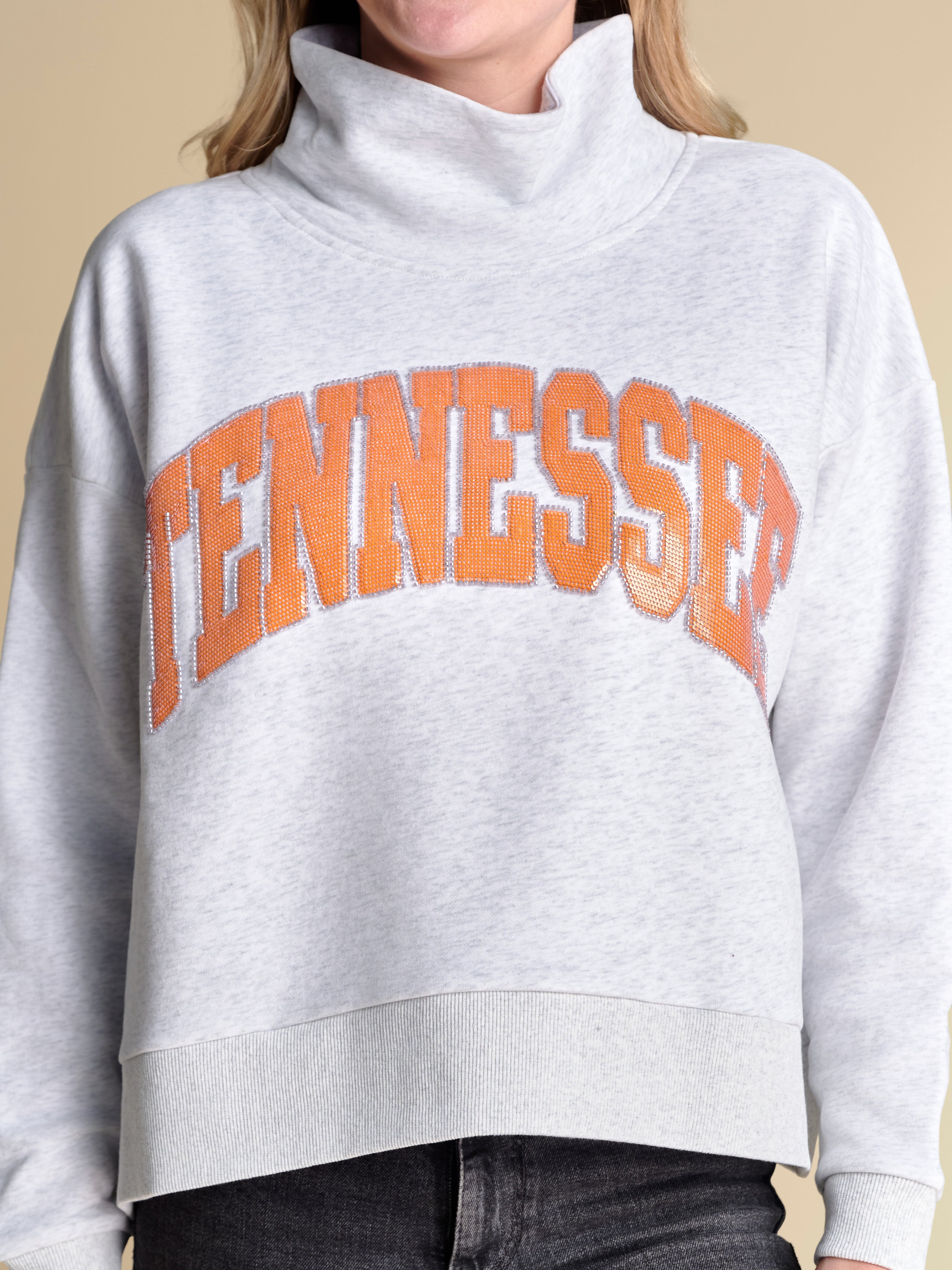 Designed with an oversized fit and hidden pockets at the side seams, this trendy mockneck sweatshirt is equal parts sporty and elevated. It blends everyday ease with playful details, featuring a sequin wordmark logo outlined in beading for just the right amount of shimmer. We’re styling this piece with a pair of colorful, printed jeans and sneakers for the ultimate game day statement look.