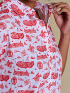 This lightweight cotton gauze button-up is anything but basic. Featuring our signature Team Toile print — complete with campus icons, mascots, and hometown highlights — it’s a collector’s piece disguised as an everyday essential. The cap sleeves with rolled cuffs and side slits keep the fit breezy and cool from kickoff to post-game.
