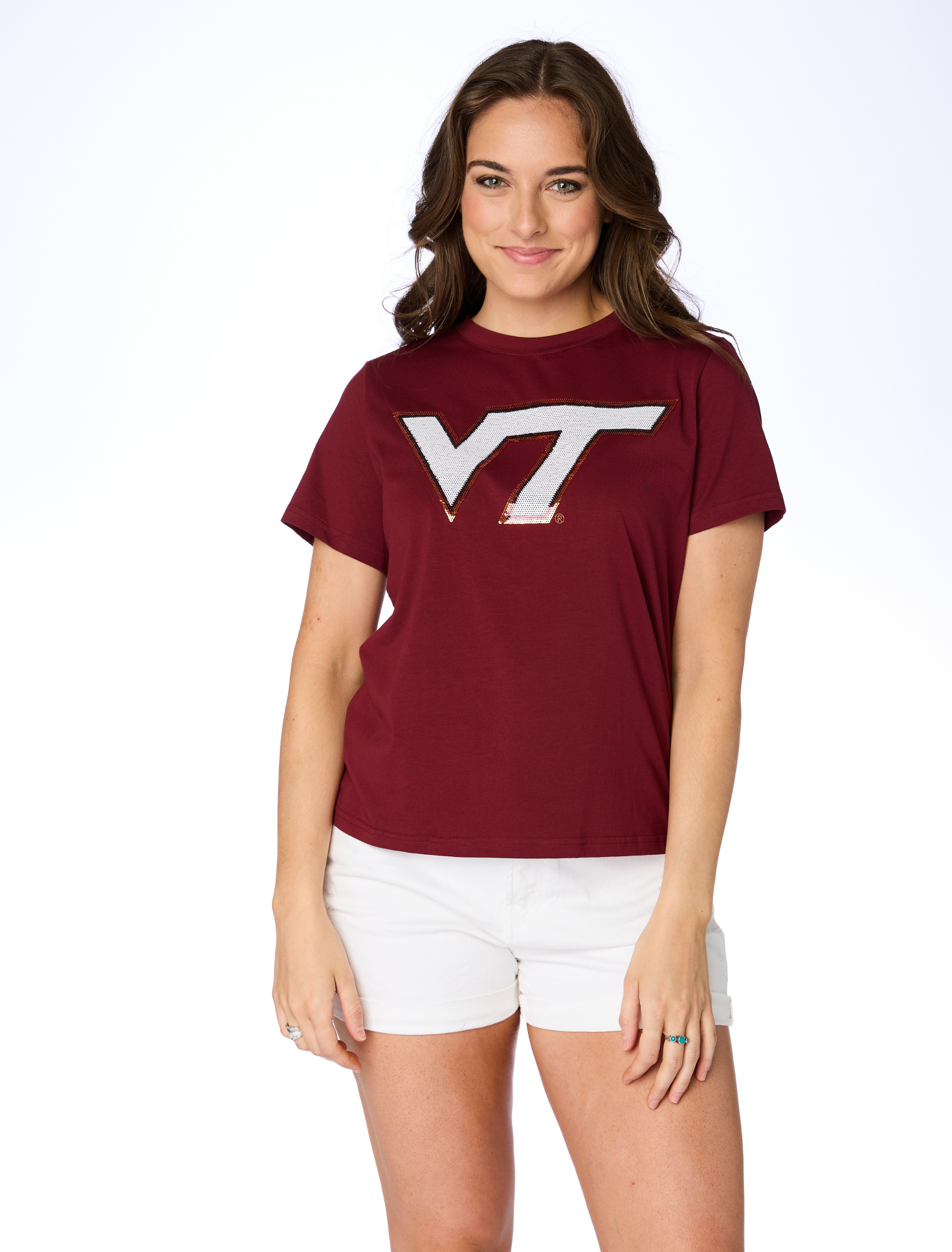 A Stewart Simmons favorite, this sparkly tee is made of comfortable pima cotton with added stretch to give it the perfect fit. This top is officially licensed so a portion of your purchase directly supports the university.