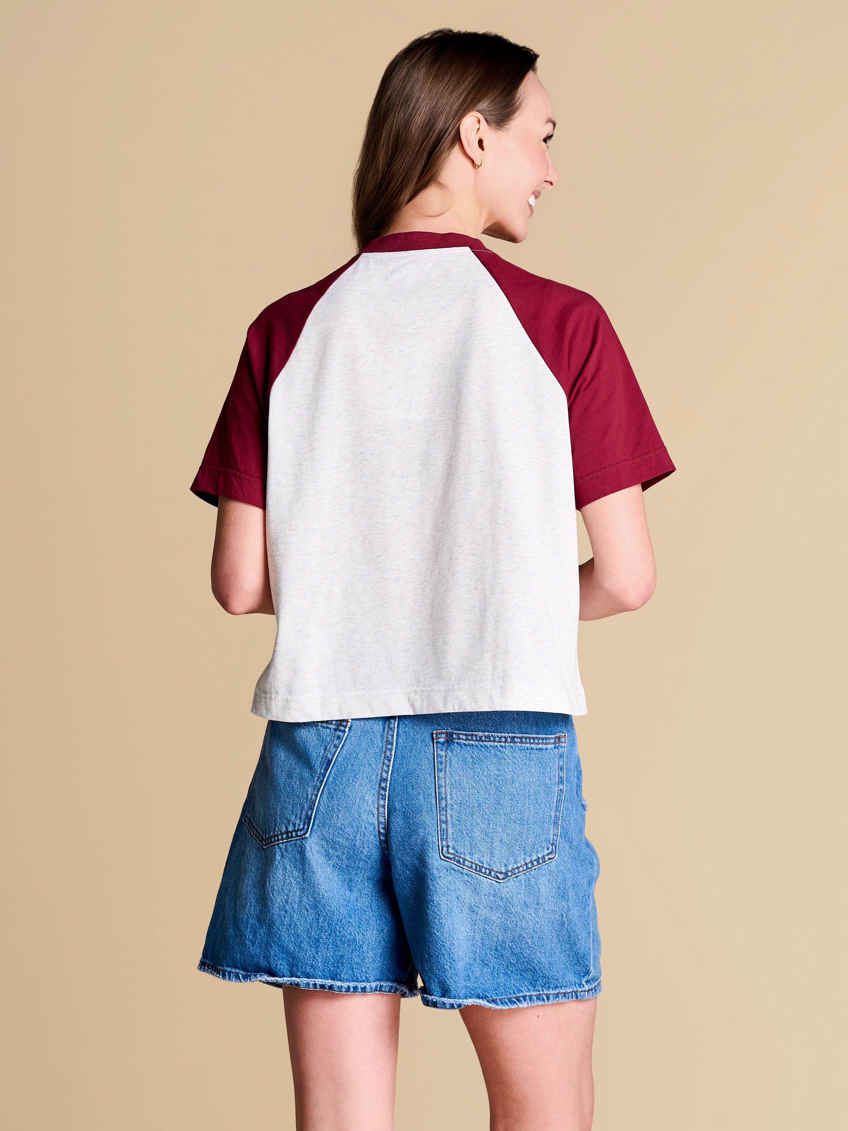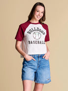 A classic raglan tee that brings all-star energy, finished with a holographic appliqué baseball motif and sequin accent details. The perfect blend of statement and casual, this piece deserves a spot in your starting spring lineup.