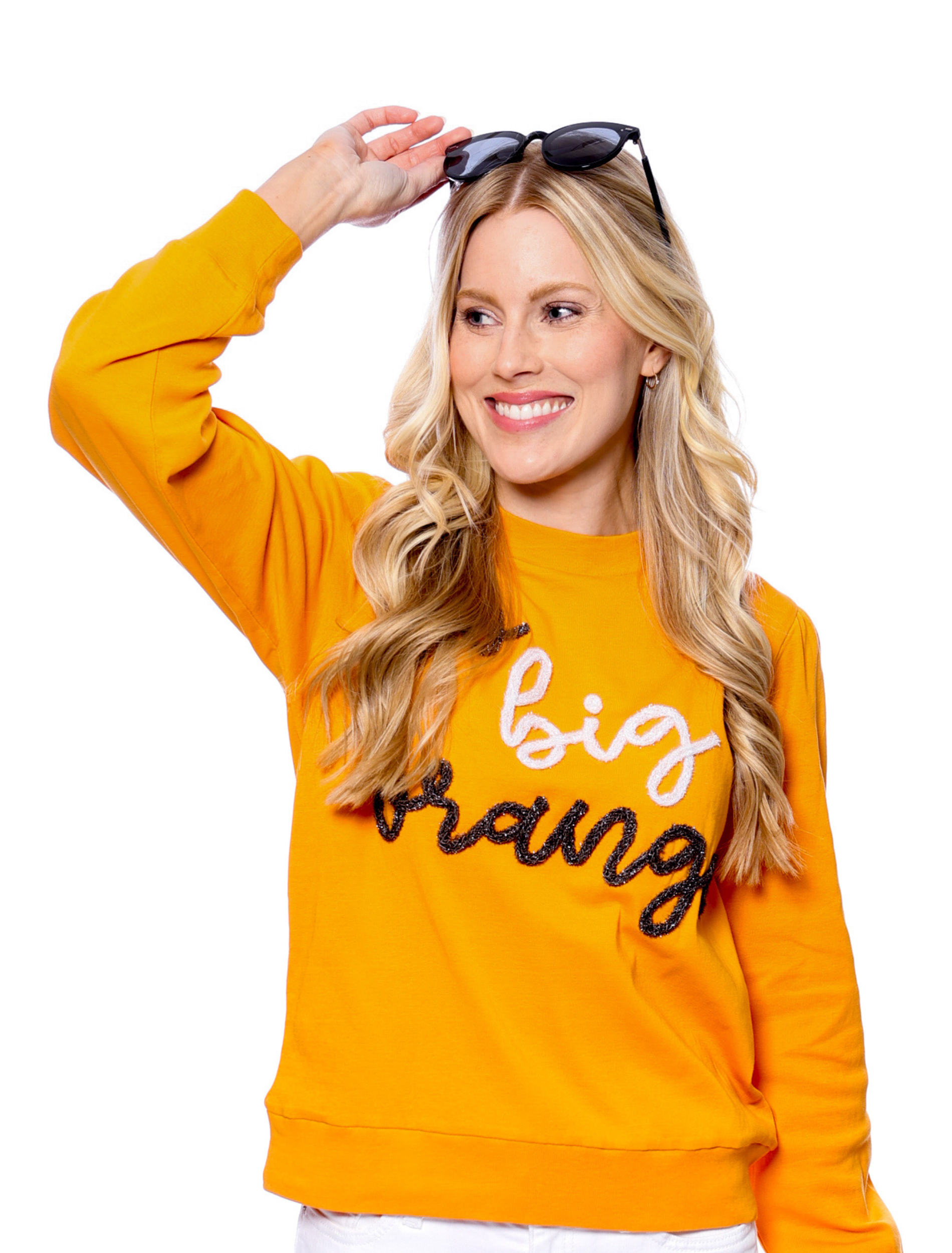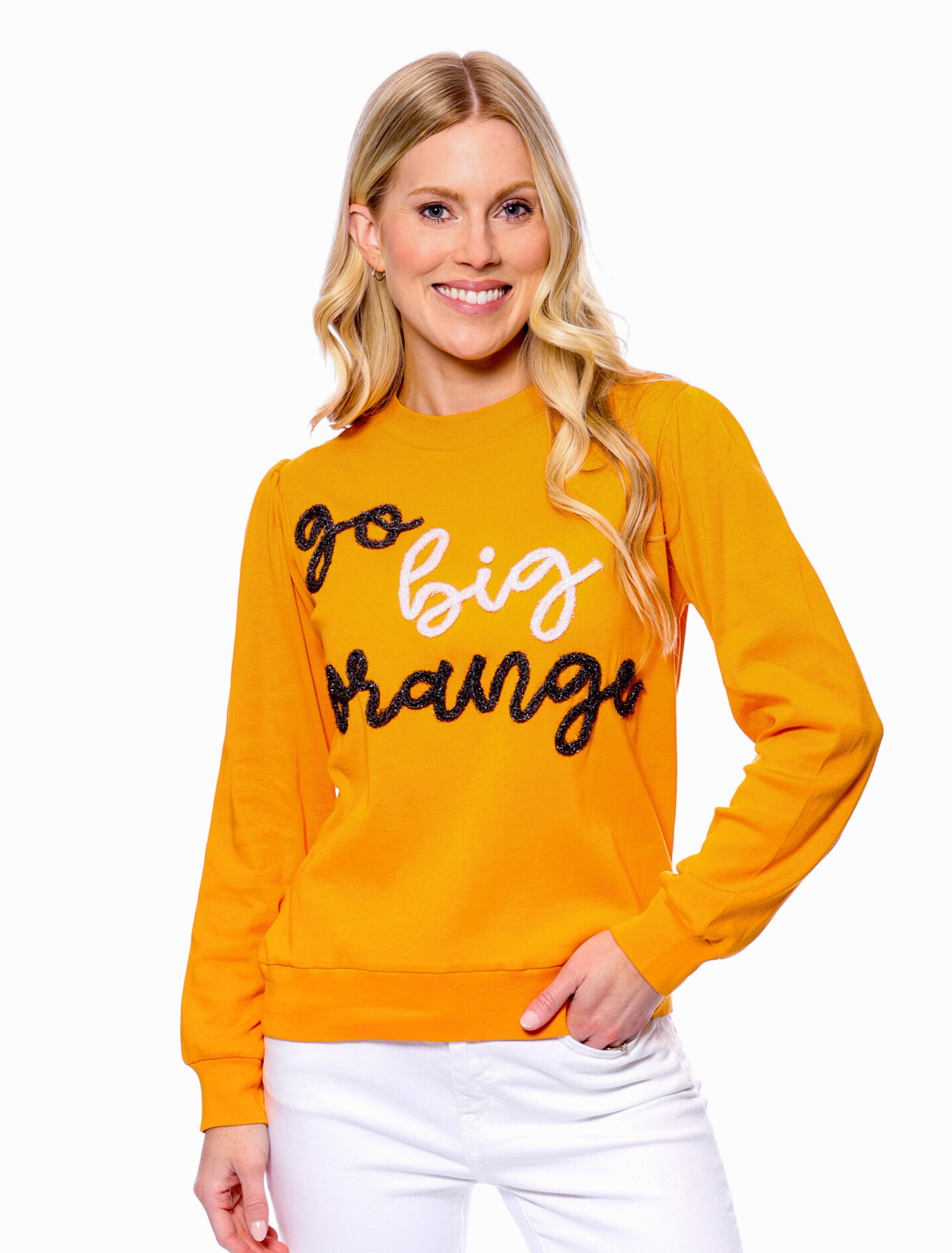 The Go Big Orange Glitter Script Long Sleeve