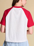 A classic raglan tee that brings all-star energy, finished with a holographic appliqué baseball motif and sequin accent details. The perfect blend of statement and casual, this piece deserves a spot in your starting spring lineup.