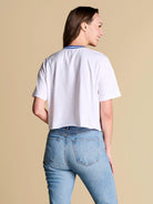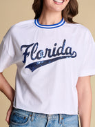 A baseball-inspired boxy tee with vintage varsity energy, featuring a sequin team logo and retro striped rib neckline. Easy, eye-catching and endlessly wearable, it’s the throw-on favorite you’ll want to rep from game time to downtime.