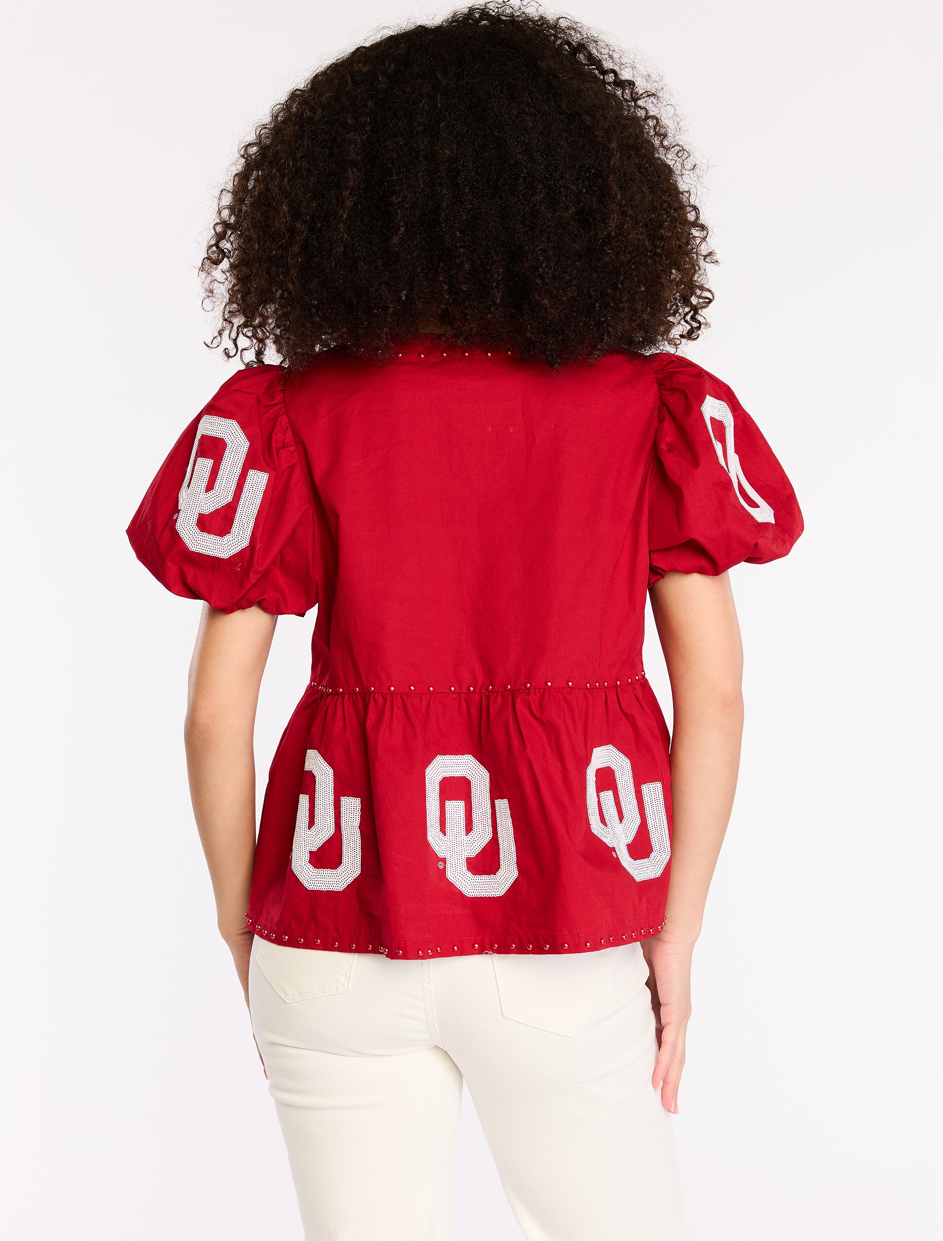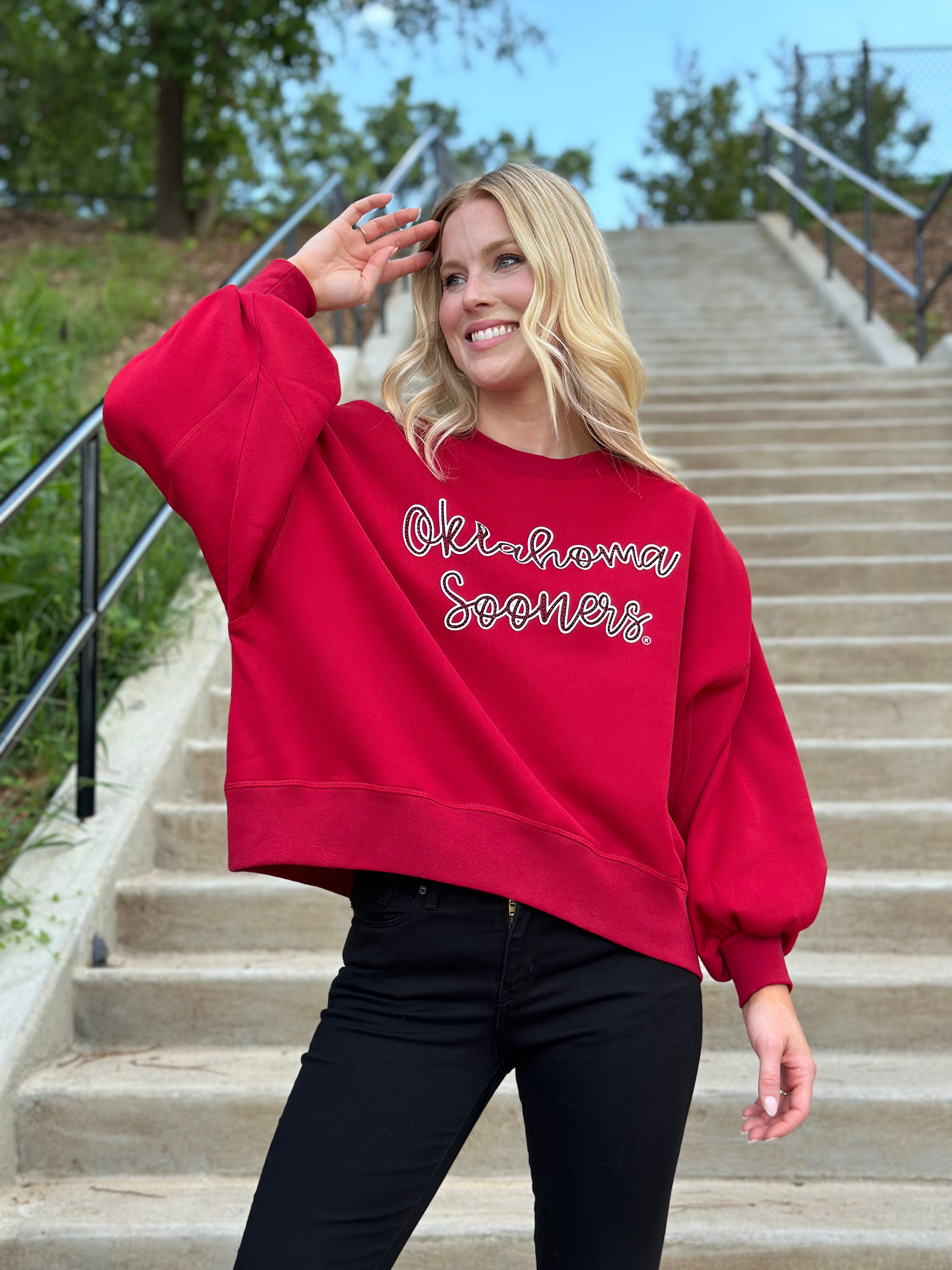 The Oklahoma Sooners Rhinestone Balloon Sleeve Pullover